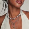 This breathtaking necklace blends pearls, gleaming silver petals, and vibrant red and green gems to imbue any utilitarian look with timeless allure.