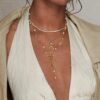 This lariat necklace is all about elegance and flow, featuring delicate lily-of-the-valley pendants interwoven with lustrous pearls. Its breezy, long design pairs perfectly with dresses, trench coats, and button-down shirts, creating a look that’s effortlessly chic with a hint of surprise. A must-have for those who love a touch of romance and versatility in their accessories.