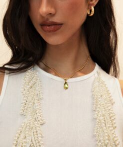 - Palladium plated brass, cz stone, glass pearl